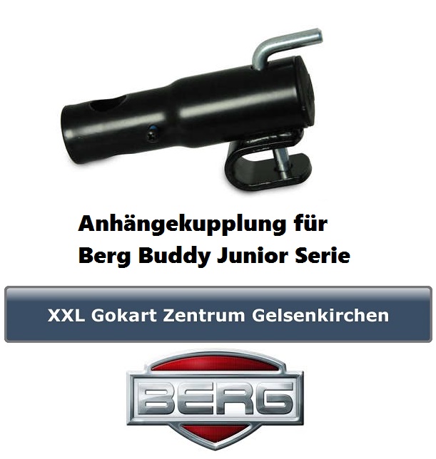 » Anhängerkupplung Junior Trailer. Diese stabile Anhängerkupplung ist für alle BERG Buddy Gokarts geeignet und passt hervorragend zum Berg Junior Abhänger 24.20.00.01