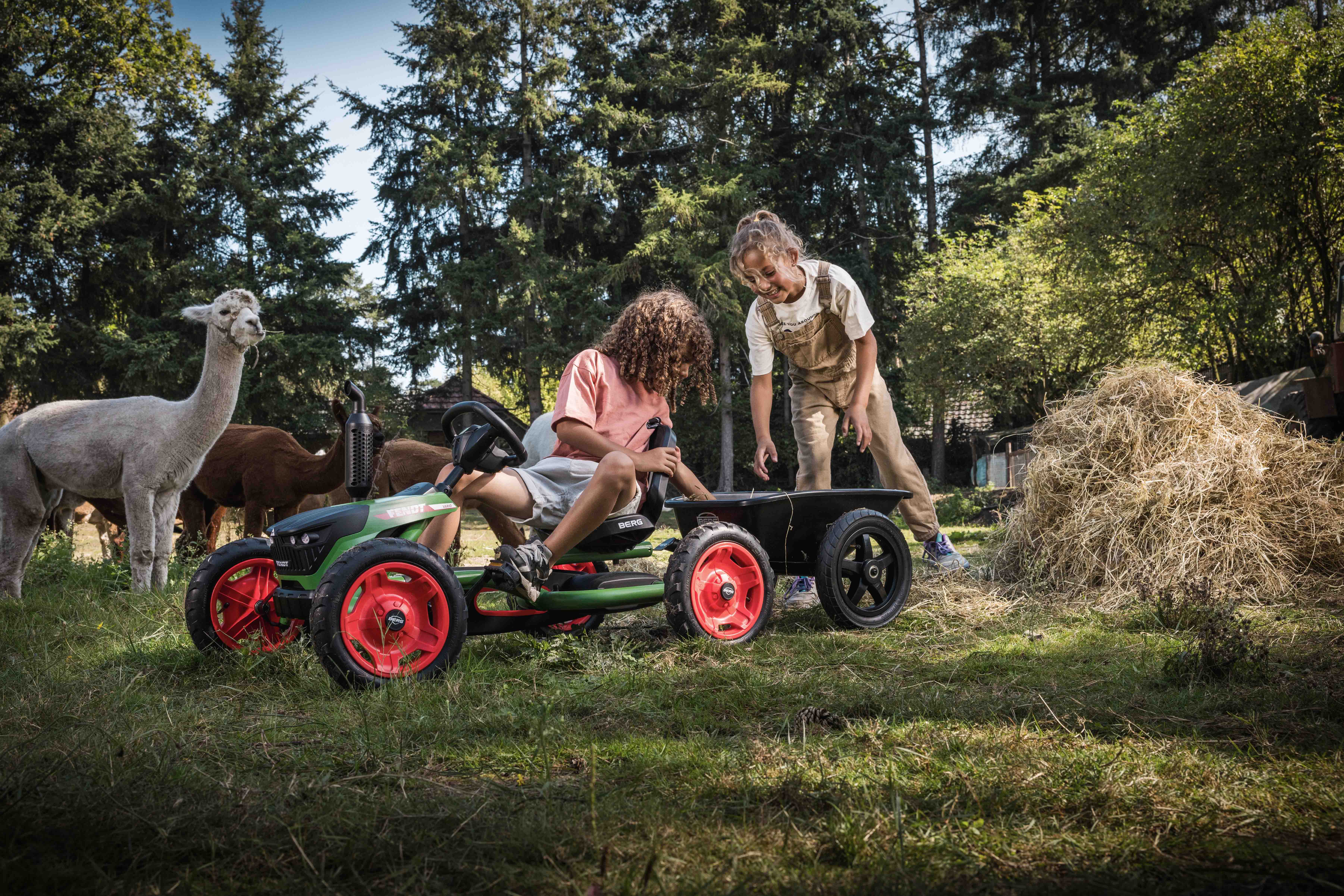 Krempel die Ärmel hoch und los geht's! Mit dem Pedal-Gokart BERG Buddy Fendt kannst du überall toll draußen spielen. Alle Buddys haben ein einzigartiges BFR-System. Damit kannst du mit den Pedalen vorwärts treten, bremsen und nach dem Stillstand rückwärts treten, ohne zwischendurch zu schalten. Sitz und Steuer sind verstellbar. Für Kinder zwischen 3 und 8 Jahren.