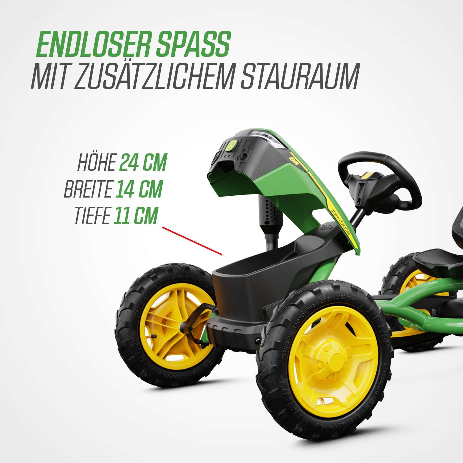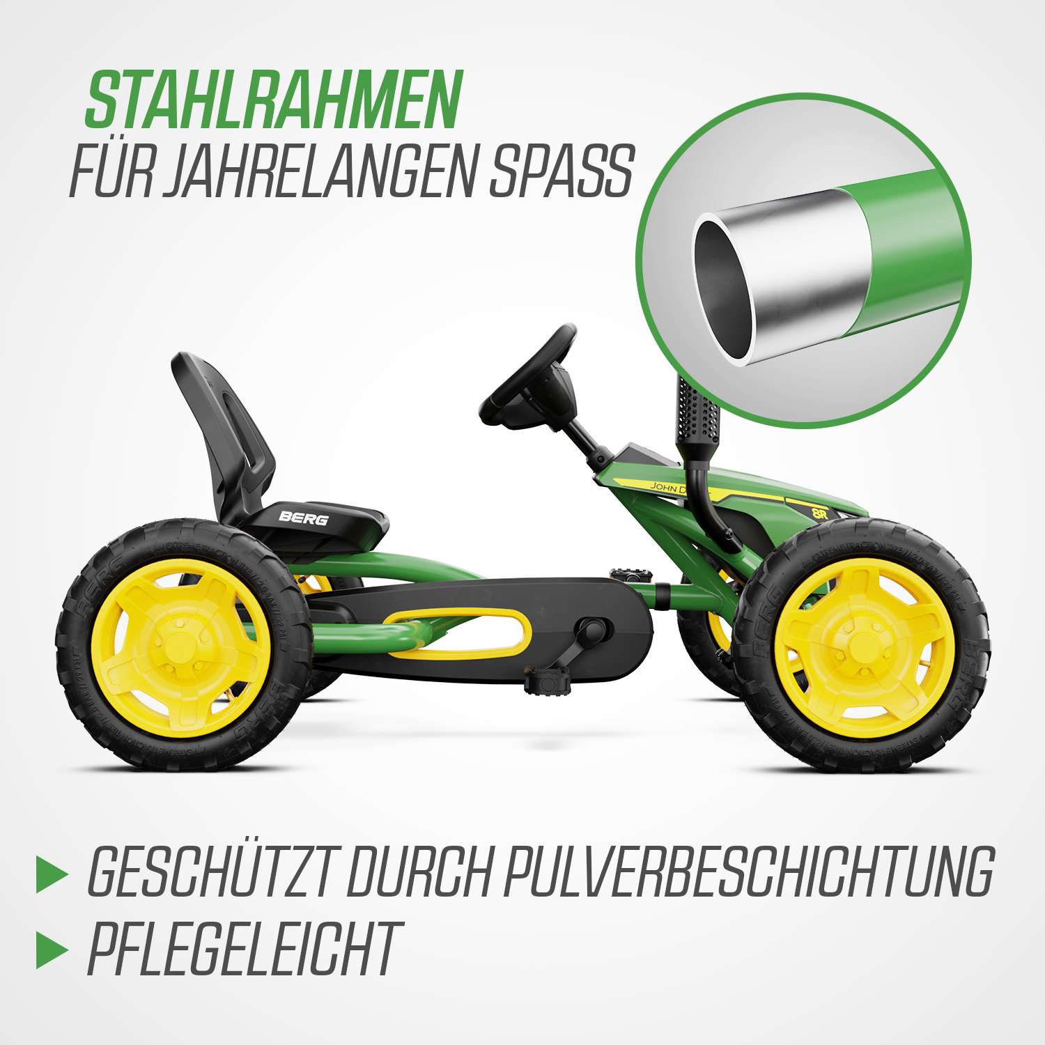 Zu der BERG Junior Serie gehören das Buddy Orange, Buddy White, Jeep Junior, John Deere Junior und der Buddy Fendt.