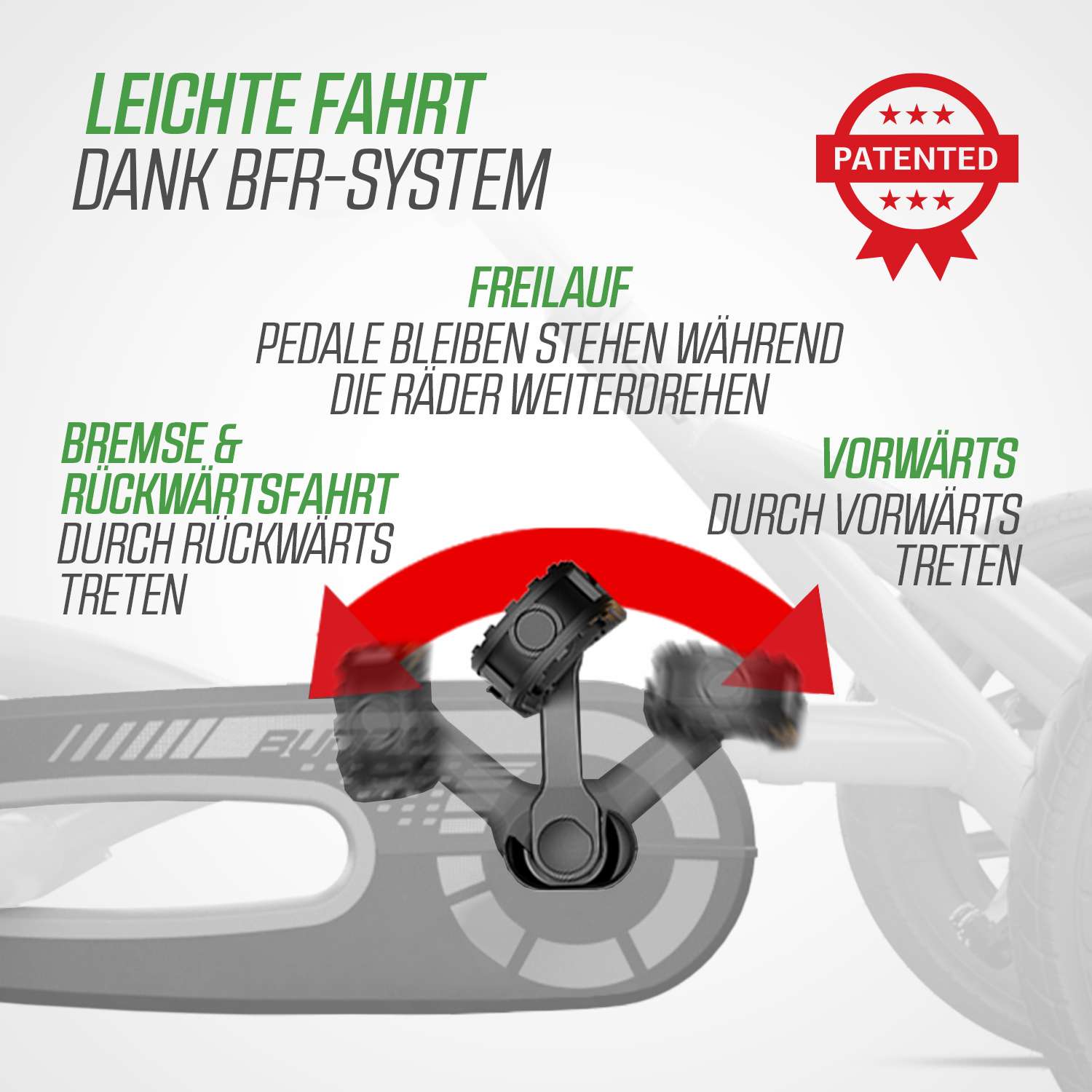 Spezielle Reifen für eine gute Bodenhaftung auf jedem Untergrund und ein cooles Design!