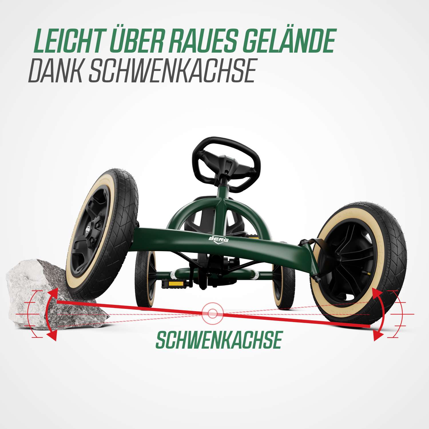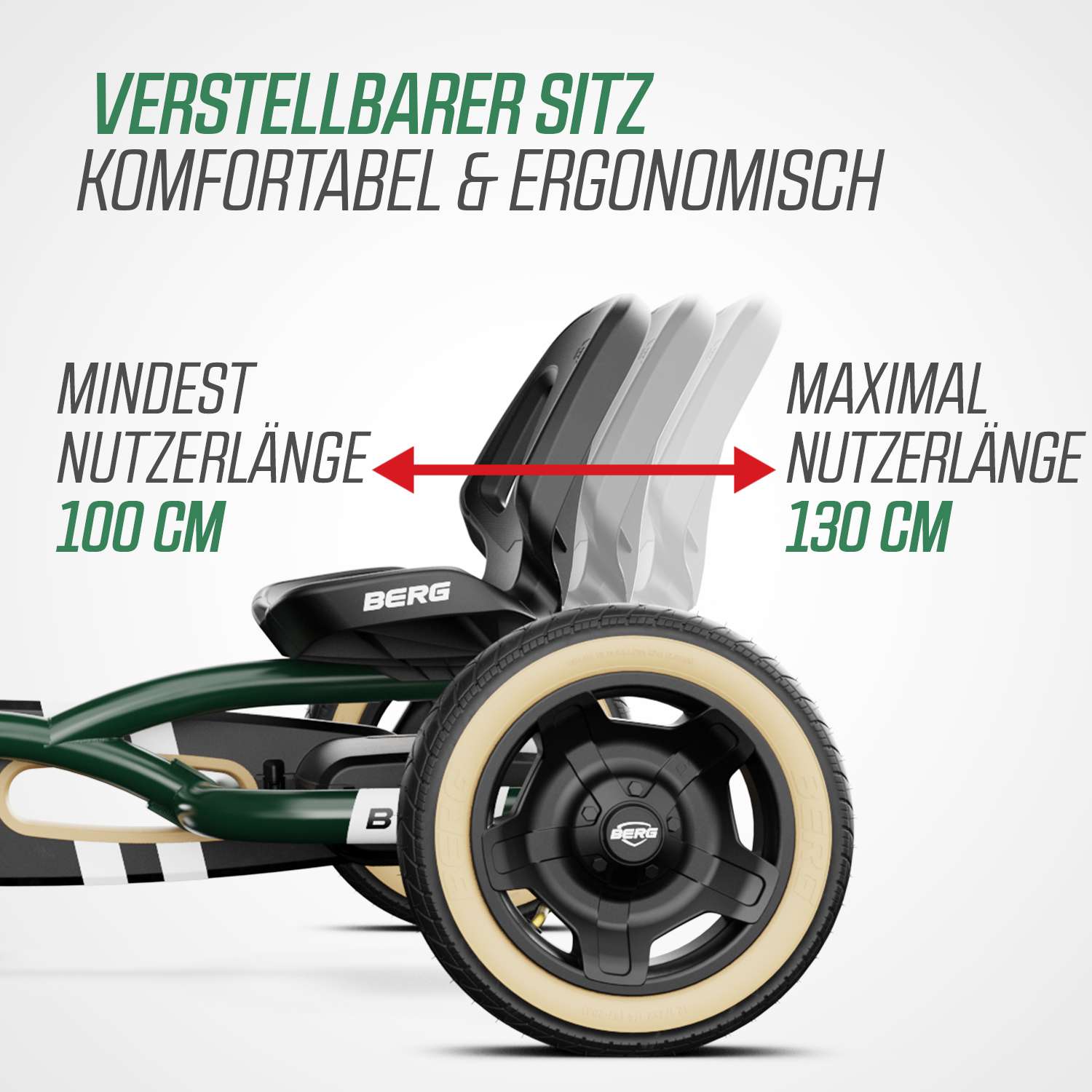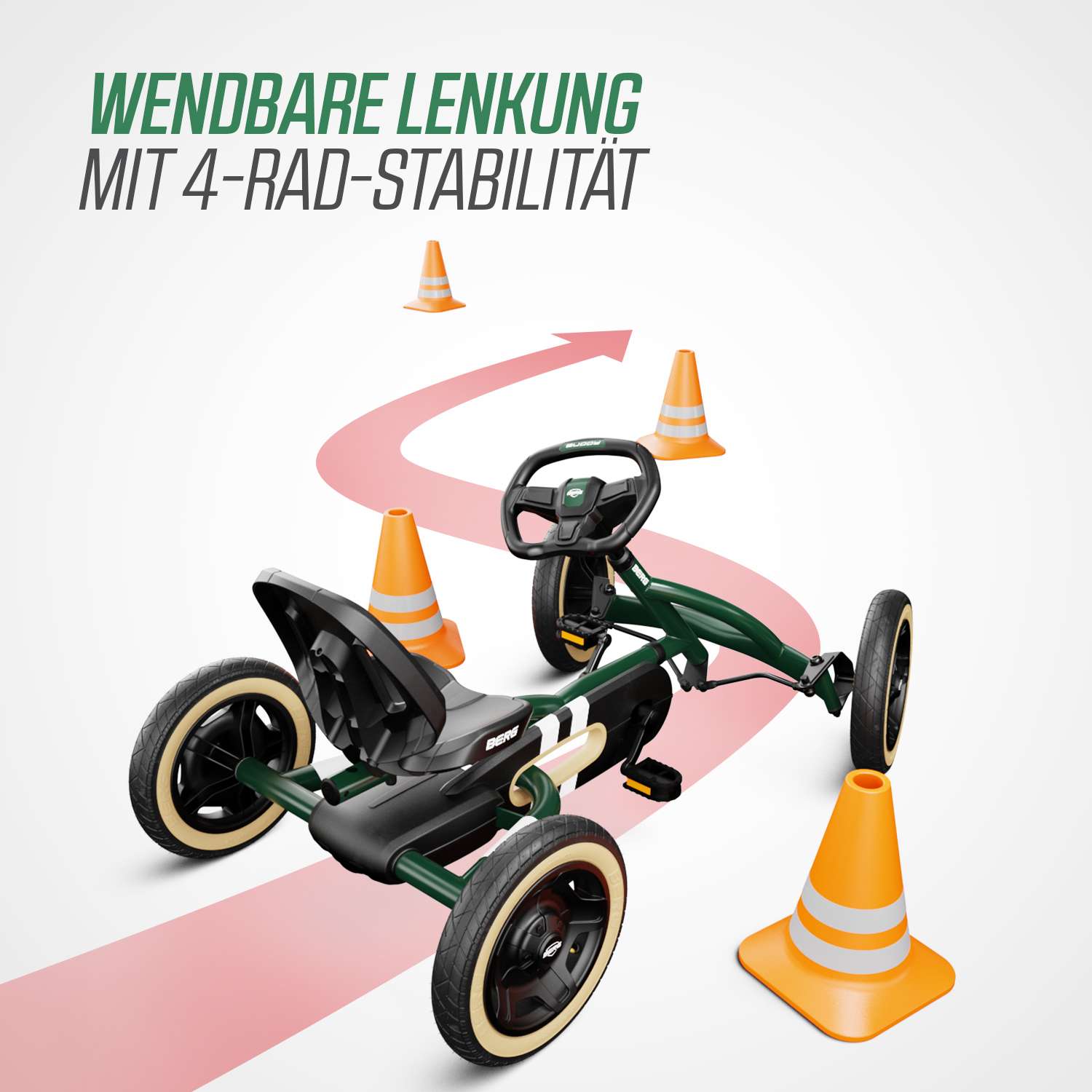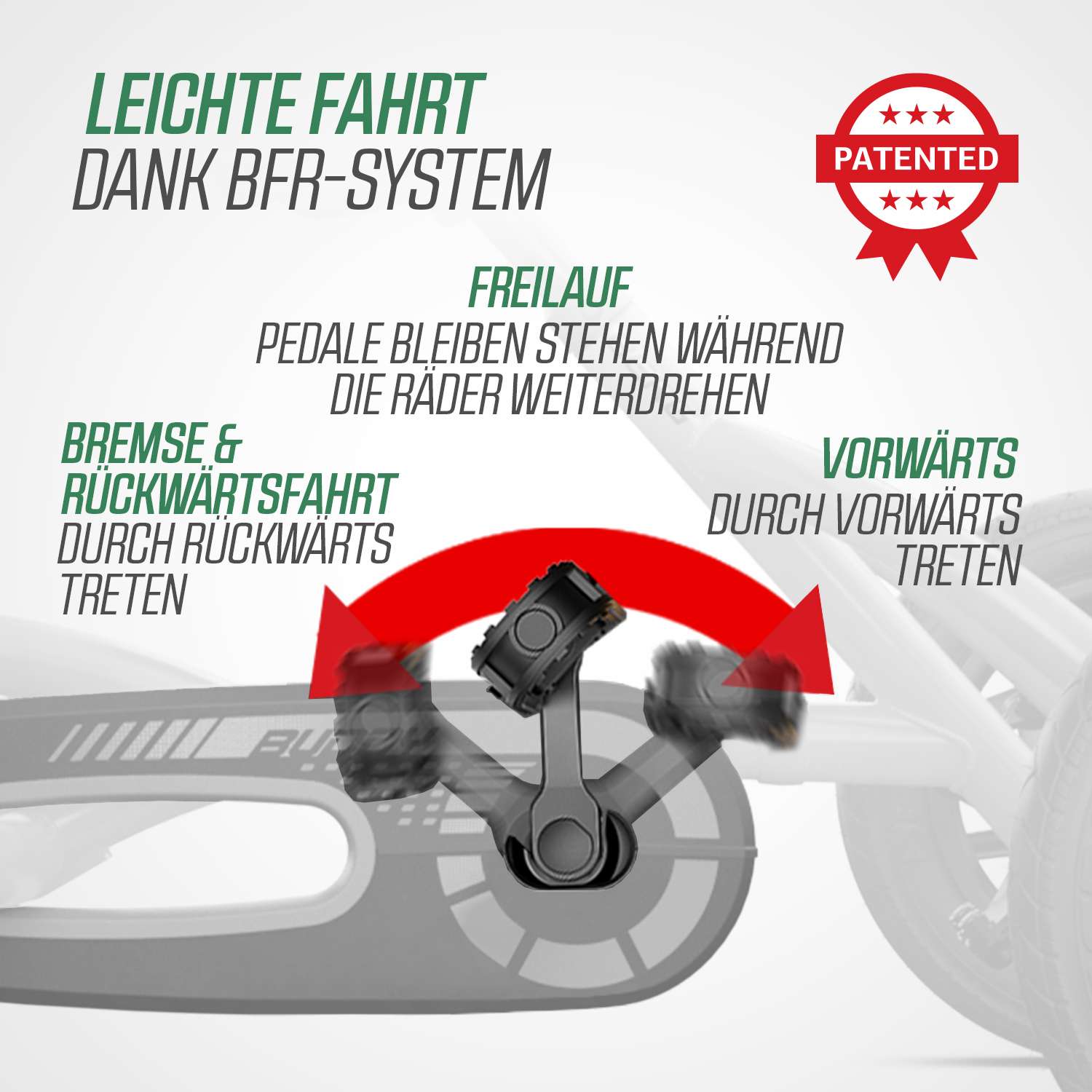 Da der Sitz verstellbar ist, kannst du mit diesem Gokart viele Jahre lang die spannendsten Abenteuer erleben. Das einzigartige BFR-System ermöglicht es, mit den Pedalen zu fahren, zu bremsen und rückwärts zu treten.