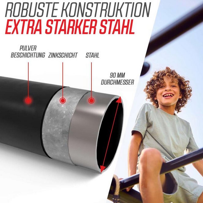 - Monkey Bar inklusive / horizontale Kletterstangen