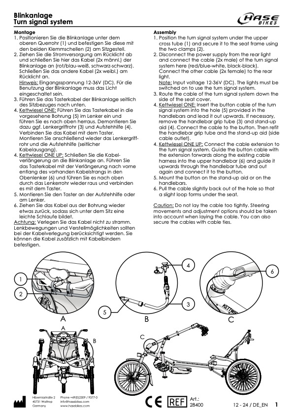 Sie gibt auch dem Fahrenden optische Signale, wenn geblinkt wird. Die Blinkanlage wird an der Sitzlehne montiert, die Bedienungstaster an den Lenkergriffen. Gespeißt wird die Anlage durch den Motor Akku.