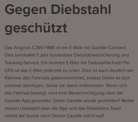 Möchtest du dich häufiger mal aufs Rad schwingen? Das Gazelle Avignon C380 HMB bietet dir ultimativen Komfort. Es ist das komfortabelste E-Bike von Gazelle. Und das merkst du auch an sämtlichen Punkten, angefangen bei der entspannten aufrechten Sitzposition über die Federung, extra breite Reifen und den breiten und niedrigen Einstieg bis hin zum intuitiven Display und zum wartungsarmen Riemenantrieb. Die leistungsstarken Tagfahrleuchten und der 625-Wh-Akku runden den Komfort ab. Das Avignon C380 HMB ist standardmäßig mit der intelligenten Diebstahlschutztechnologie Connect von Gazelle ausgestattet.