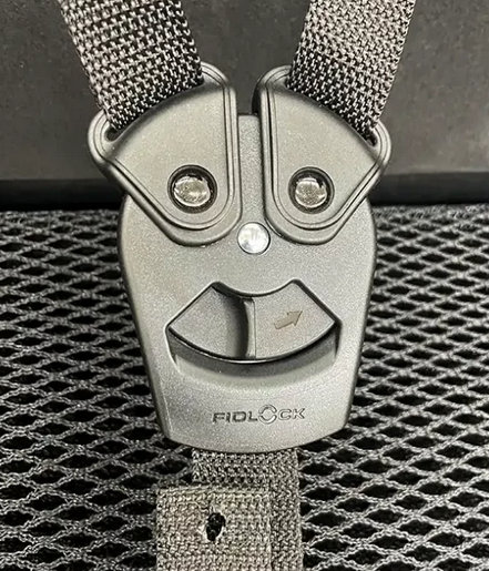 - 3-Punkt-Gurte mit Fidlock-Magnetverschluss (1 mittig oder 2 seitlich)